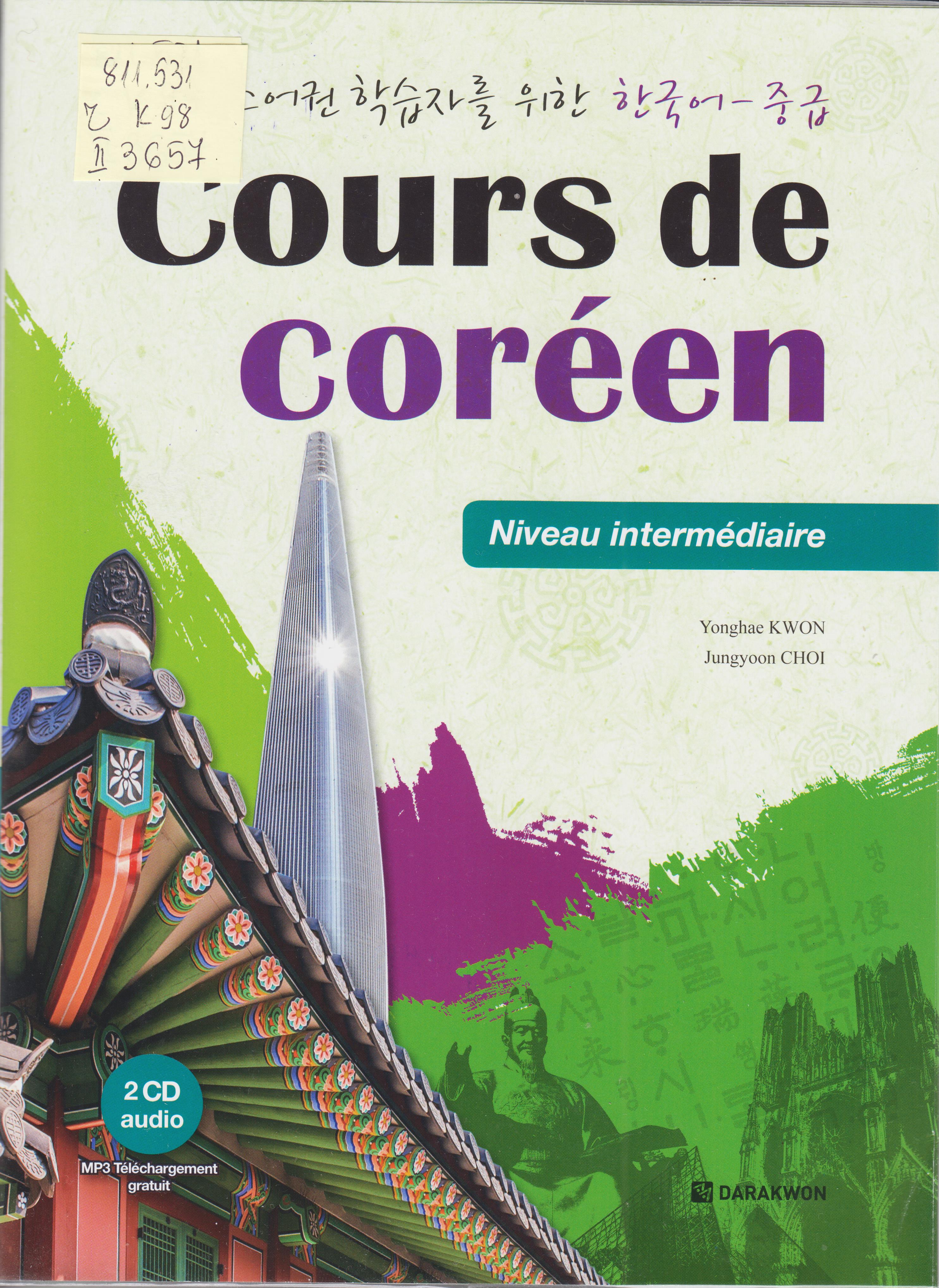 Description: Cours de coreen : niveaur intermediaire Is an intermediate part of the Cours de coreen series, a customized Korean textbook for French learners. As with beginners, we selected the most necessary items for French language learners through educational experiences and questionnaires of authors who teach Korean in France. In the everyday life such as school life and work situation, I introduce the intermediate level Korean expression that Korean people actually use through the dialogue, and I have included the French commentary so that I can easily understand the grammar and the practical sentence pattern. In addition, we introduced the unique culture of Korea that can help learners of French language to understand Korea, so that they can acquire background knowledge for learning Korean. The workbook is provided as a separate supplement, so that we can apply grammar and vocabulary learned in conjunction with our textbooks, and practice necessary Korean language skills at intermediate levels through various writing assignments. (the publisher)